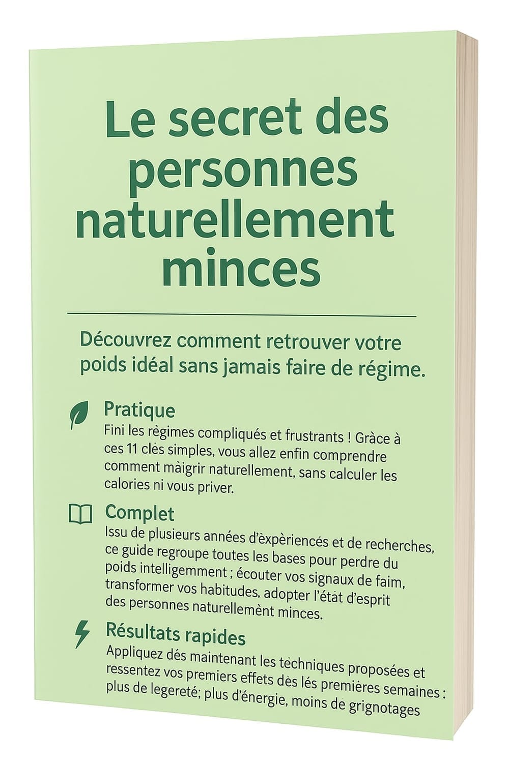 Fini les régimes compliqués et frustrants ! Grâce à ces 11 clés simples, vous allez enfin comprendre comment maigrir naturellement, sans calculer les calories ni vous priver. Chaque conseil est concret, facile à appliquer dès aujourd’hui, dans votre quotidien.